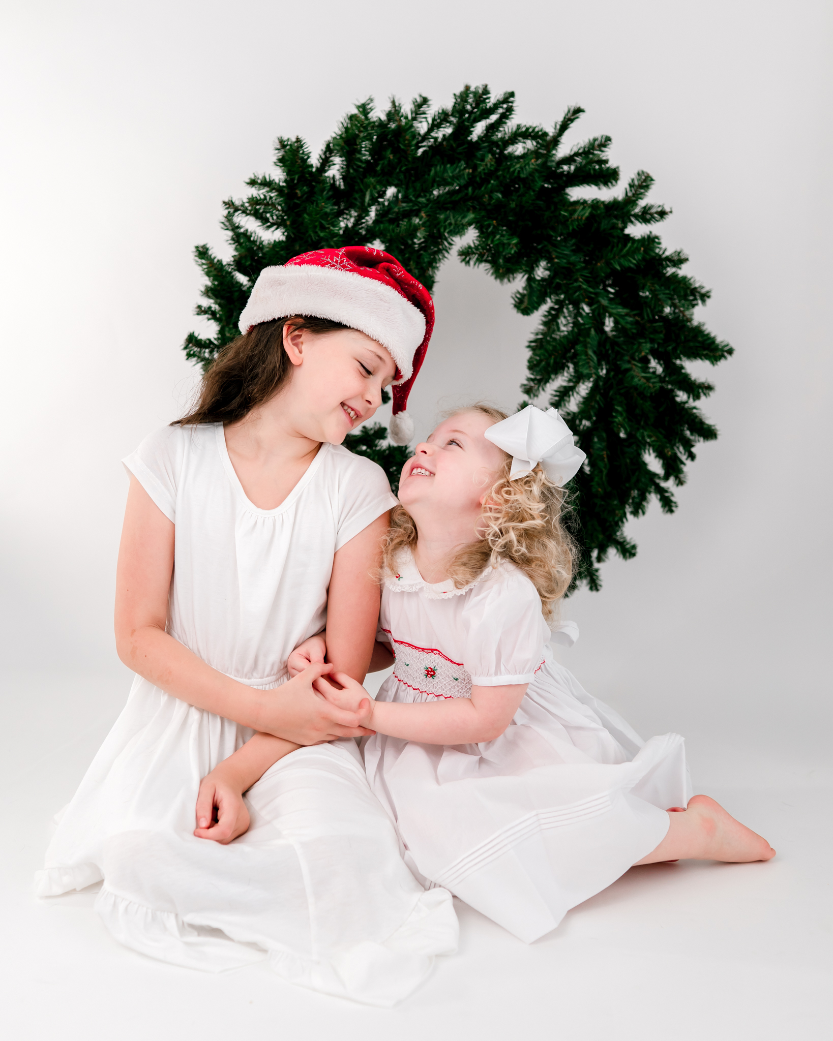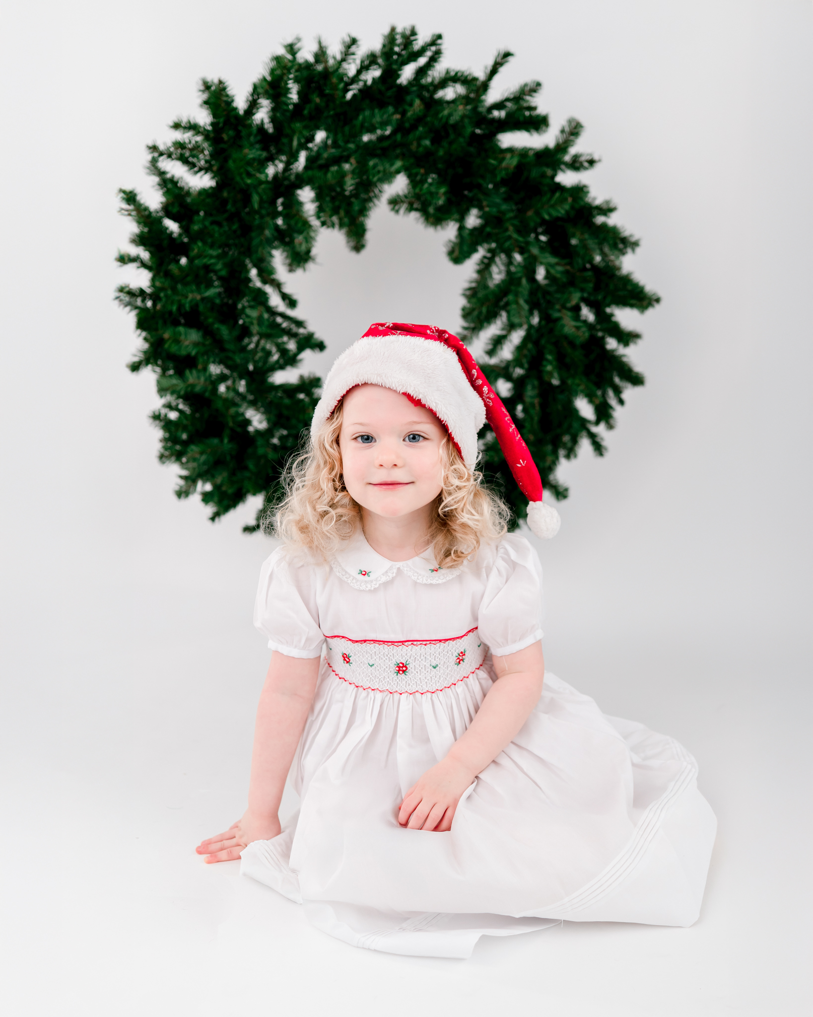 If you've been looking for the cutest holiday photos of your child, Wreath Minis are perfect! The setup is clean and classic with a white backdrop and wreath so the focus stays on your child AND a bigger, more decorated wreath, for family photos. The best of both worlds!